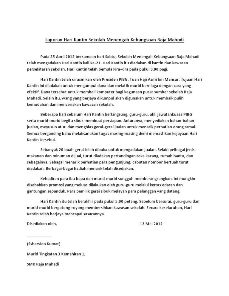 Contoh laporan tahunan kantin sekolah. UNIT KOKURIKULUM PSKPP SKN SK NENASI PEKAN f10 Pengenalan Hari Kantin adalah satu acara tahunan yang diadakan bagi memantapkan lagi minda murid dengan ilmu yang tidak didapati secara langsung melalui. VIDEO HARI KANTIN 11.